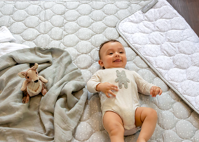 We have quilted our play mats to make them more durable (and of course stylish too) and filled them with breath eze bonded fibre so that the play mats are luxurious for your baby’s comfort and support during baby playtime or tummy time.