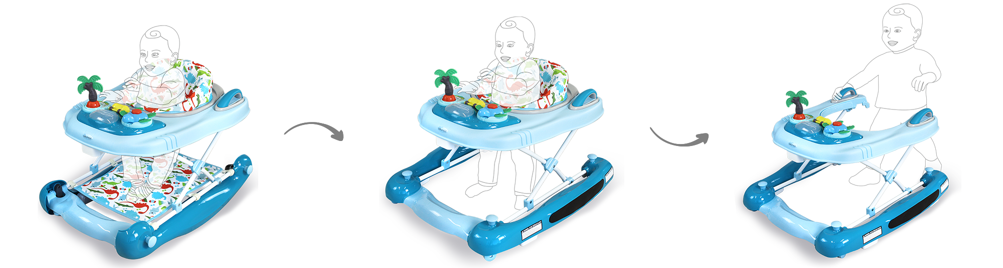 At this stage, your baby has not yet begun to stand but has learnt to sit upright. In this rocking mode, your baby can enjoy an entertainment space with the full support of a seat and a rocking mat.