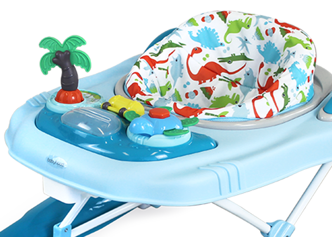 1. The first stage begins with the rocking mode where your baby has not yet begun to stand but has learnt to sit upright. In this rocking mode, your baby can enjoy an entertainment space with the full support of a seat and a rocking mat.