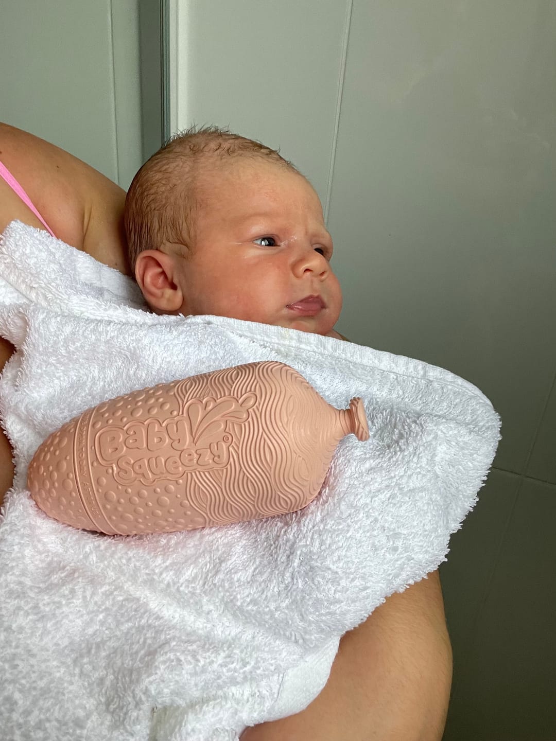BabySqueezy is a 3-in-1: Newborn Bath Rinser, Teether & Toy