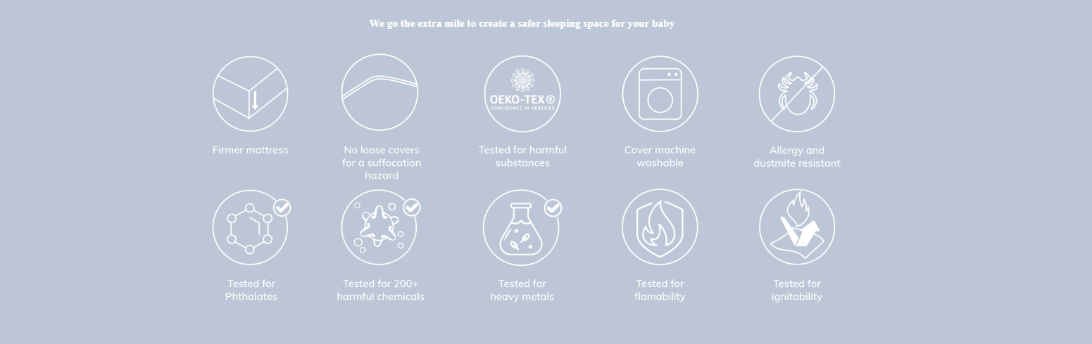 Our mattress complies with AS/NZS 8811.1:2013 Methods of testing infant products – Sleep Surfaces – Test for firmness.
