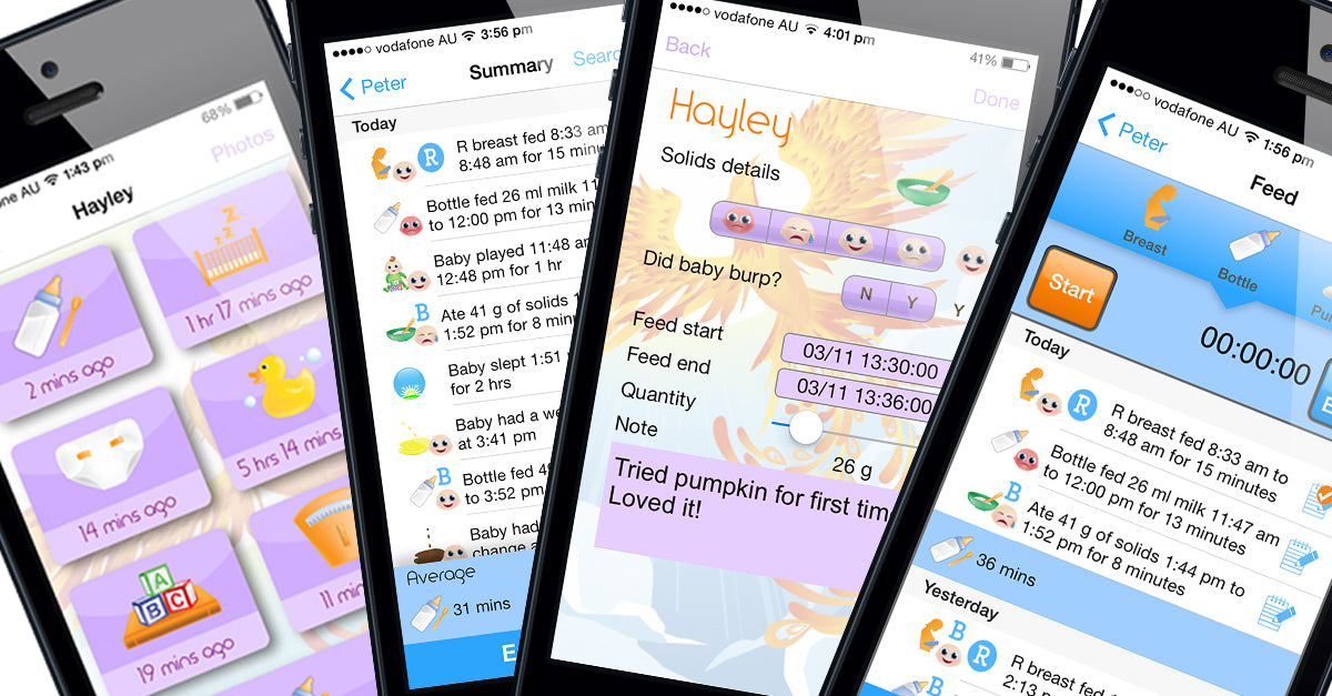 Log, track & essentially keep a healthy record schedule of the varied routines your new born baby requires.